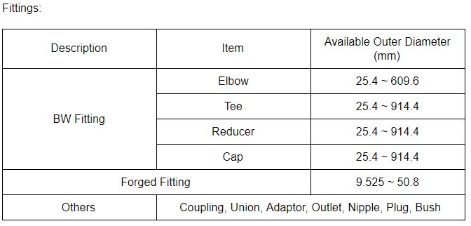 此外,管道、管件和法蘭的平均生產范圍如下所示: