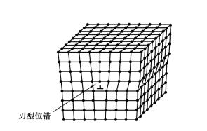 線缺陷主要是指位錯。位錯的形式很多,其中最常見的一種形式是刃型位錯,如圖1.2.4所示。刃型位錯的表現(xiàn)形式是在晶體的某一晶面上,多出一排原子面,它好像一把刀刃插入晶體中,使該晶面上、下兩部分晶體間產(chǎn)生錯排現(xiàn)象,故稱為刃型位錯。在位錯線附近一定范圍內(nèi),晶格發(fā)生了畸變。